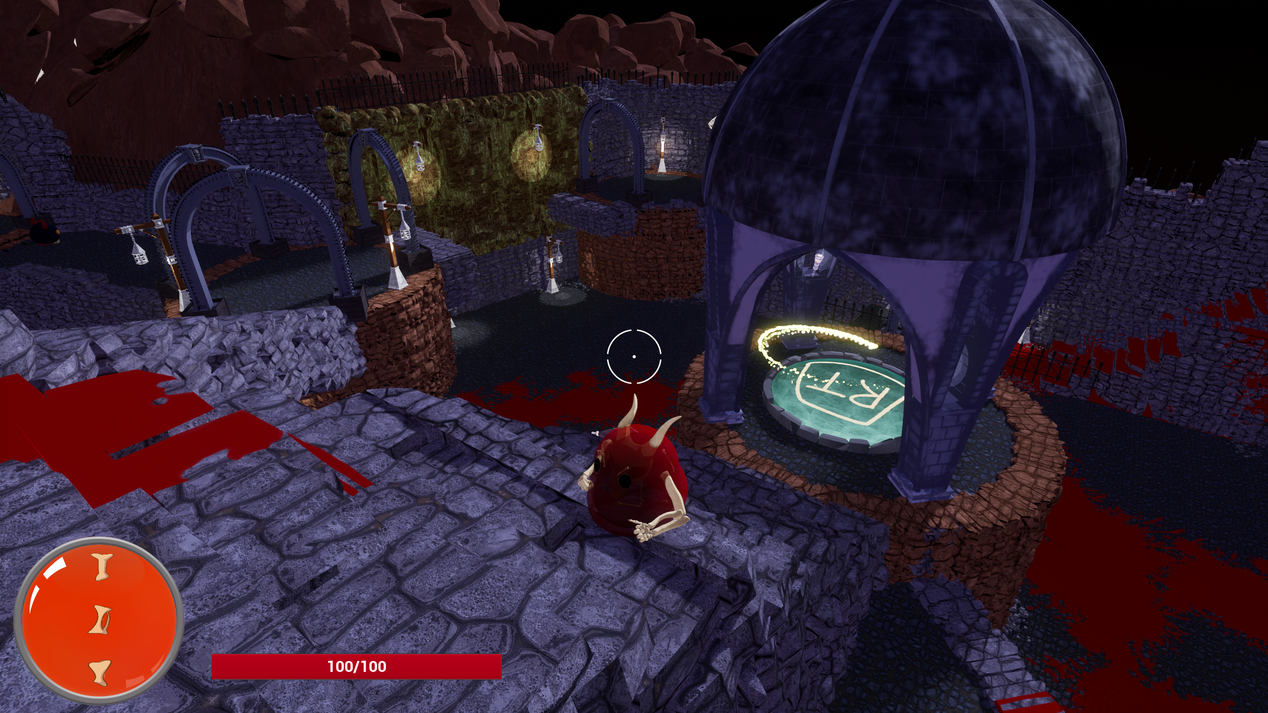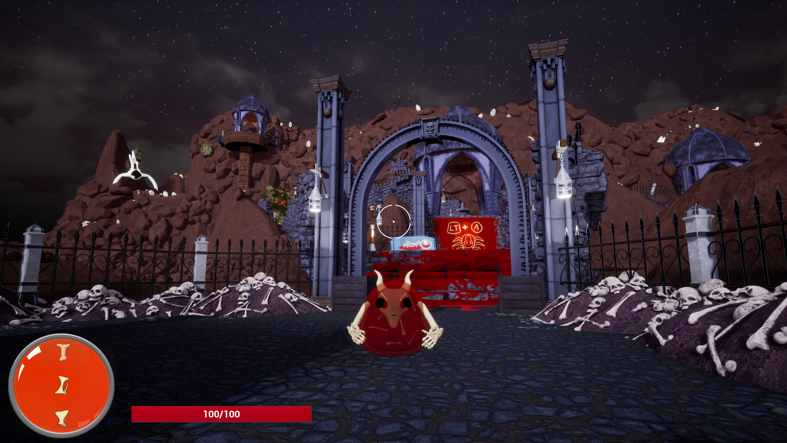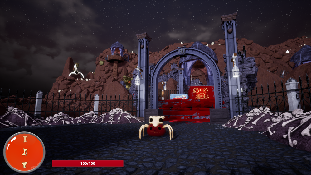 The player embodies a little blood demon that must reach and take back control of Hell's great plaza from other monsters. To do this, it will need to use its ability to shapeshift between its normal appearance and its arachnid form.