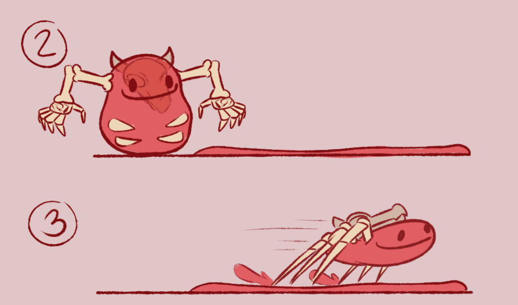 This lumbering form was designed to focus on offense. With it, the player can spray blood on surfaces and enemies. It can also take bones from inside its body and throw them on enemies, as well as specific walls to create platforms from coagulated blood.