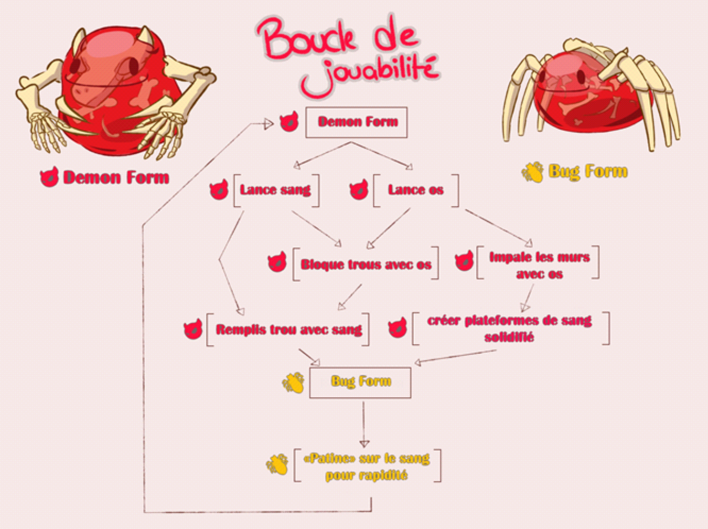 In the end, these are the mechanics we came up with for each form (design images by Guillaume Massé):